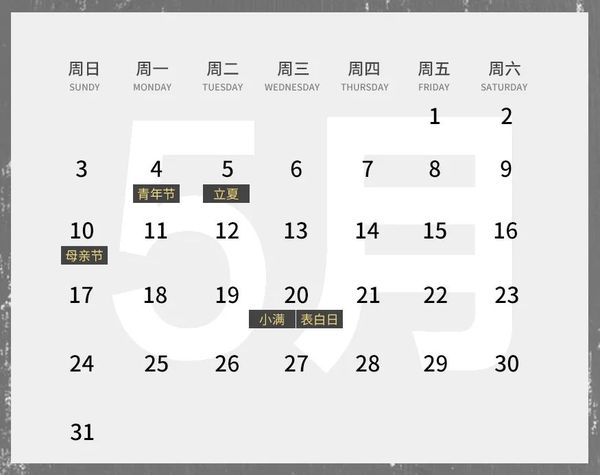小伙伴们,大家好呀! 本周应该是四月份最难熬的阶段 因为熬过了这个时候就会迎来五一假期 所以,今天为你送上一份五月营销热点 趁这段时间,提前做好活动规划 希望在假期的你能玩得开心