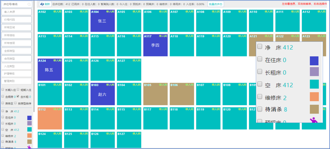 02 清晰动态的房态展示,数据自动汇总统计,节省数小时的统计工作。